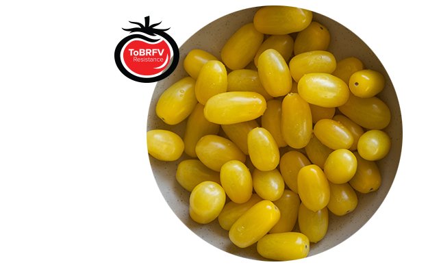 Sweet, high yielding, and visually distinctive - this yellow grape tomato delivers unique elongated, tapered fruit (13–15g) with outstanding flavour and a high brix of 9+ at maturity. SUNSTAR has intermediate resistance to ToBRFV.