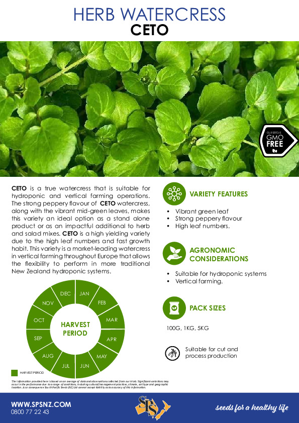 CETO is a true watercress that is suitable for hydroponic and vertical farming operations.