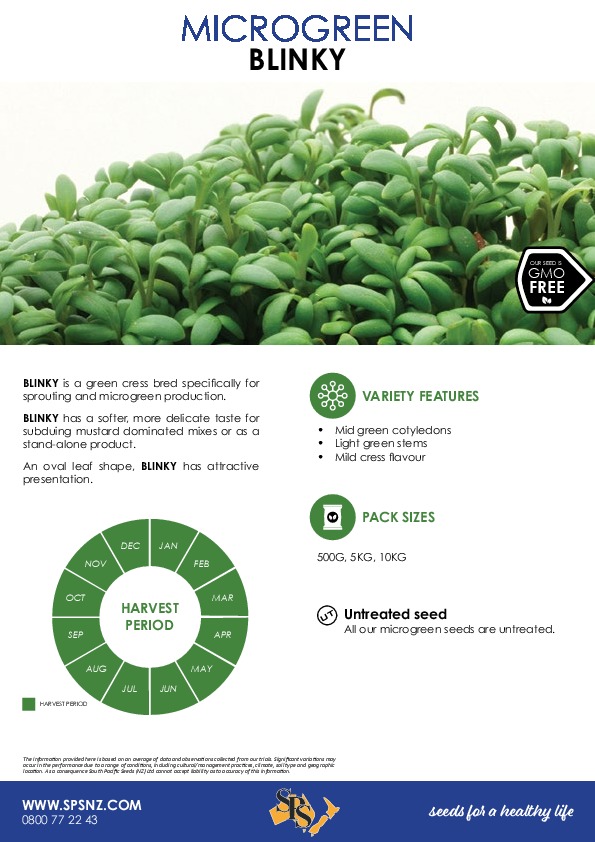 BLINKY is a green cress bred specifically for sprouting and microgreen production.