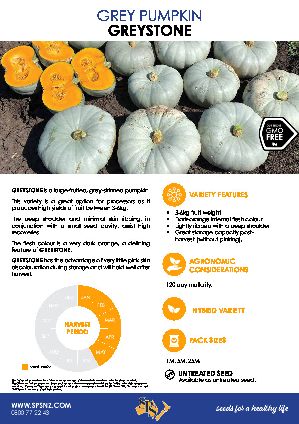 GREYSTONE is a large-fruited, grey-skinned pumpkin.