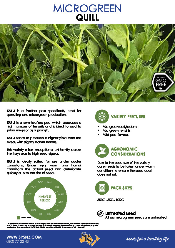 QUILL is a feather pea specifically bred for sprouting and microgreen production.